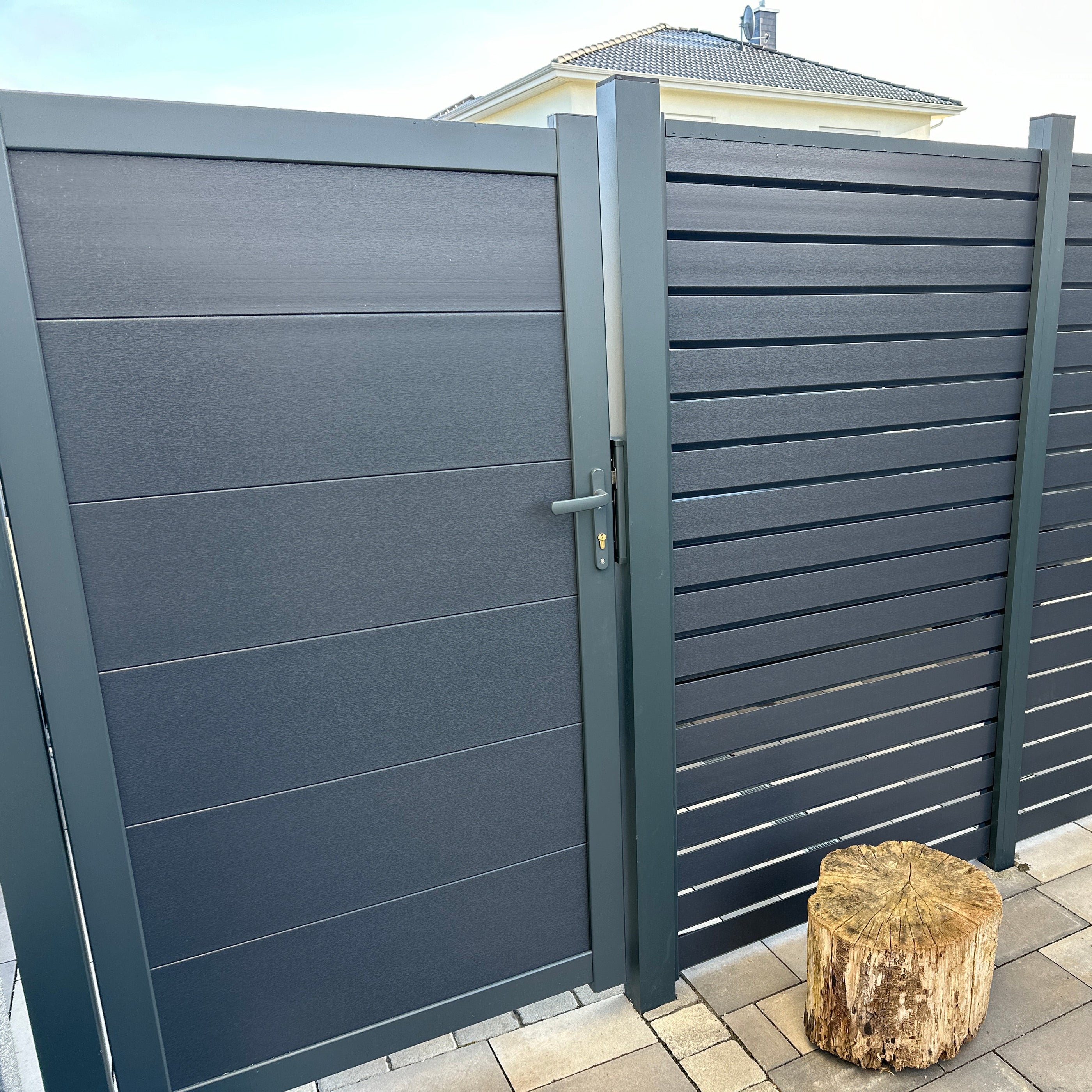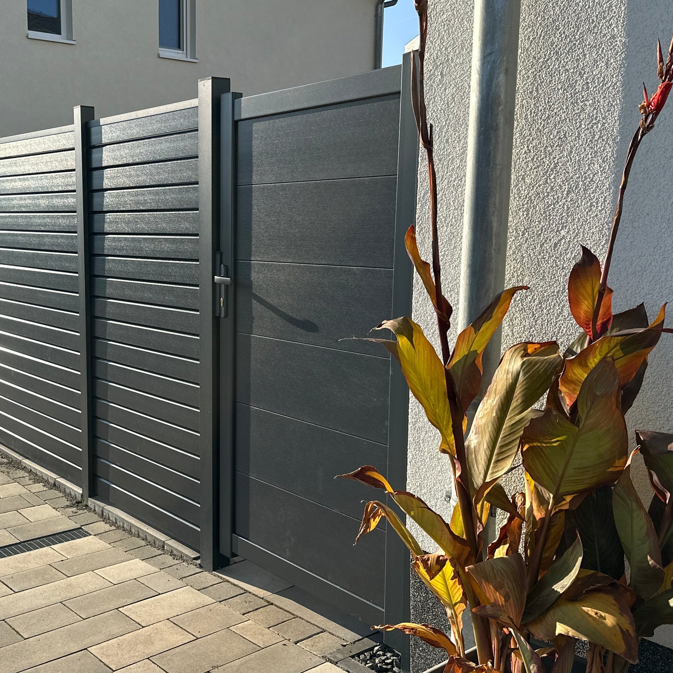 Verleihen Sie Ihrem Sichtschutzzaun den passenden Abschluss mit dem Zauntor aus der Fiberdeck BOSTON Reihe. Das hochwertige Tor kombiniert modernes Design mit robuster Qualität und kommt passend zum Sichtschutzzaun mit passender Kunststofffüllung.